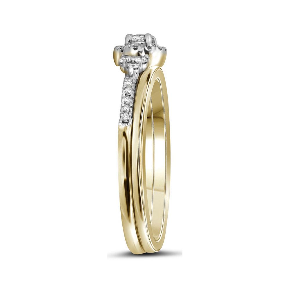 10k Yellow Gold Womens Round Diamond Slender Wedding Bridal Engagement Ring Band Set 1/3 Cttw