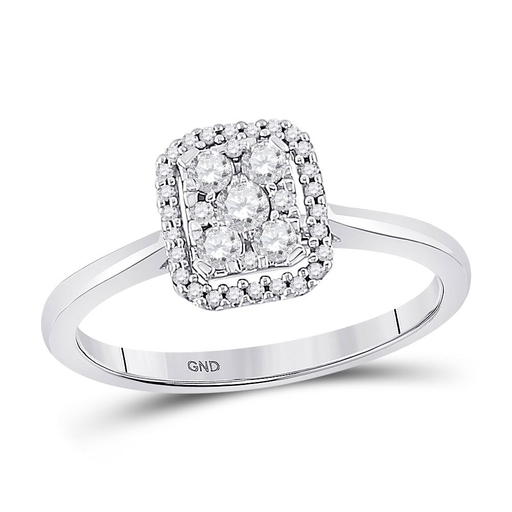 10kt White Gold Womens Round Diamond Square Cluster Ring 1/3 Cttw