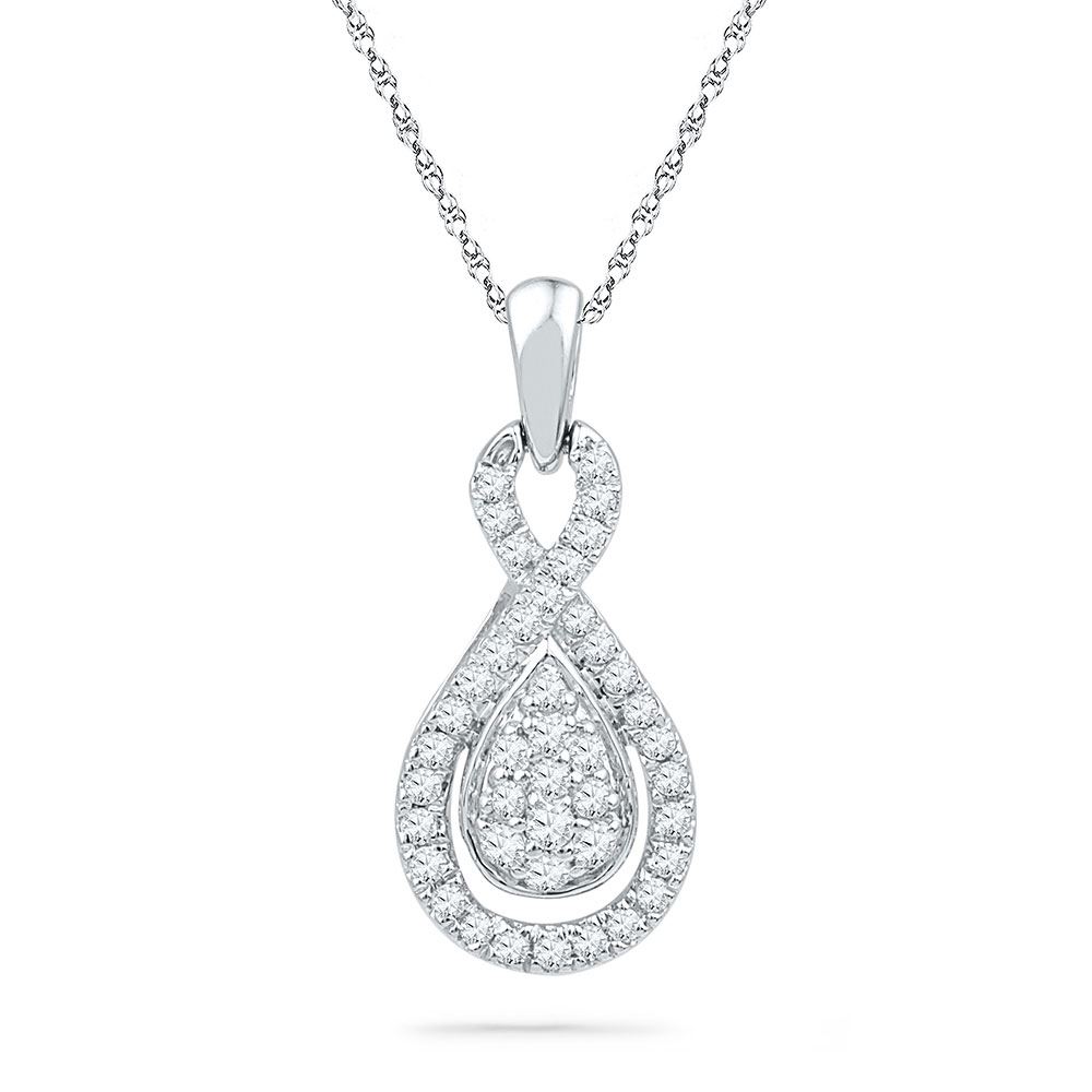 10kt White Gold Womens Round Diamond Teardrop Cluster Pendant 1/3 Cttw