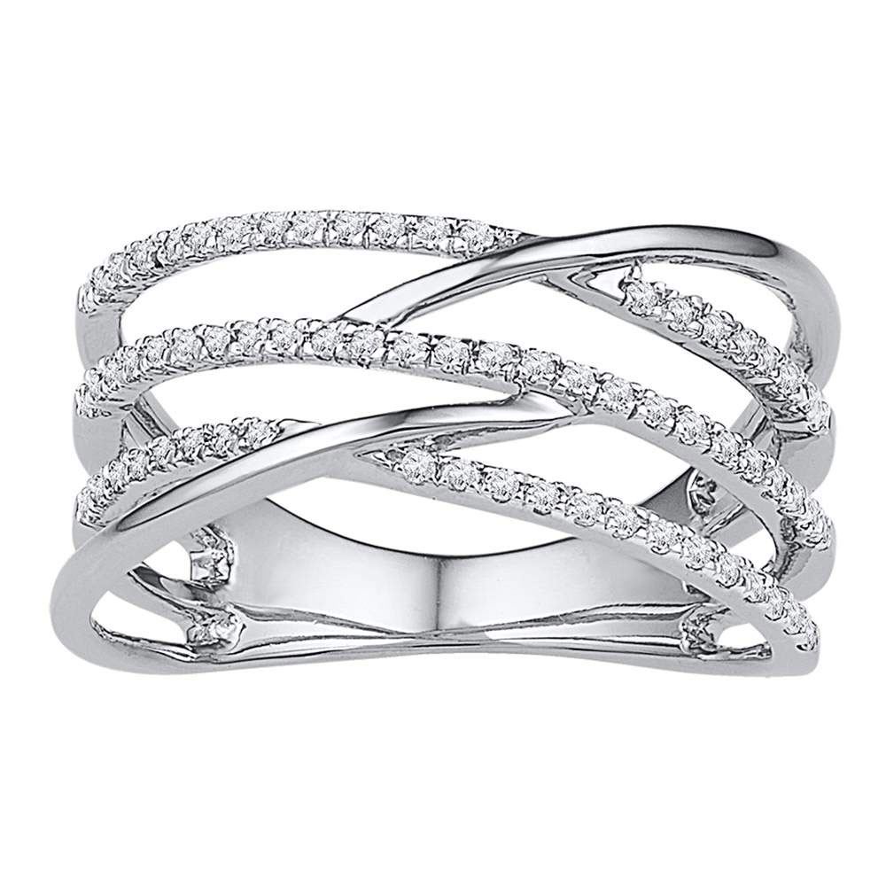 10kt White Gold Womens Round Diamond Triple Row Openwork Crossover Band Ring 1/3 Cttw