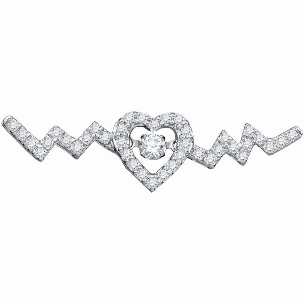 10kt White Gold Womens Round Diamond Twinkle Moving Solitaire Heartbeat Heart Necklace 1/3 Cttw