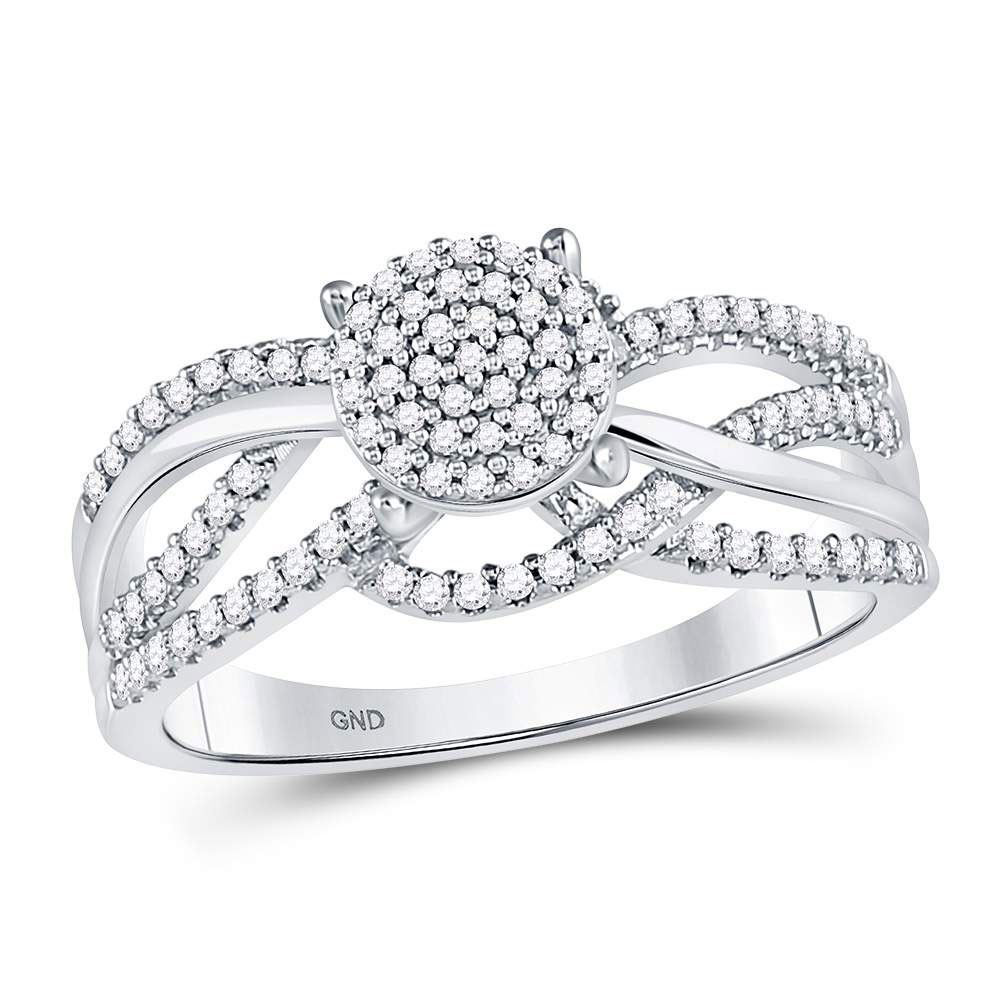 10kt White Gold Womens Round Diamond Woven Strand Cluster Ring 1/3 Cttw
