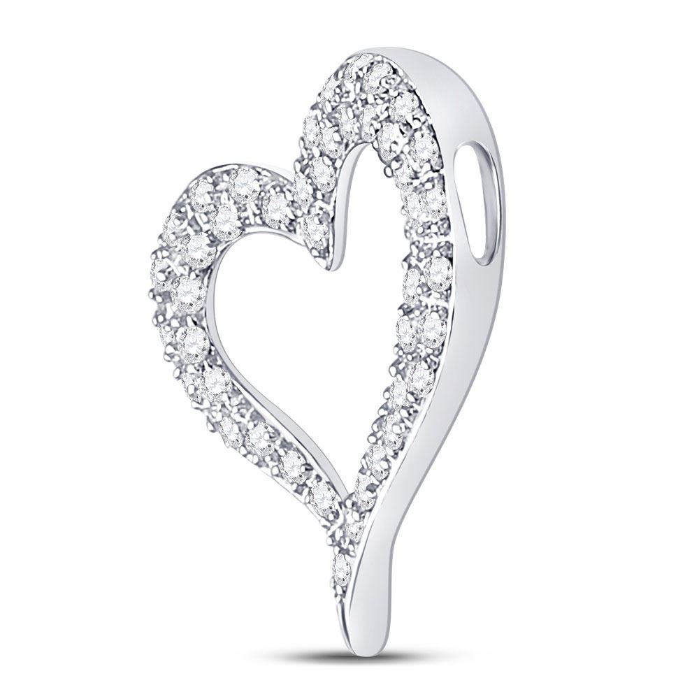 14kt White Gold Womens Round Pave-set Diamond Heart Outline Pendant 1/3 Cttw