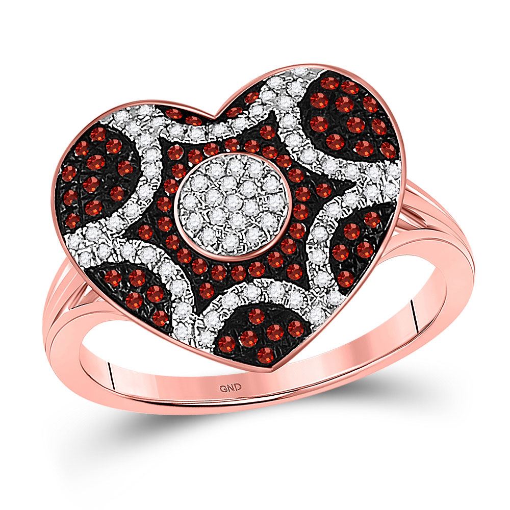 10kt Rose Gold Womens Round Red Color Enhanced Diamond Starburst Heart Cluster Ring 1/3 Cttw