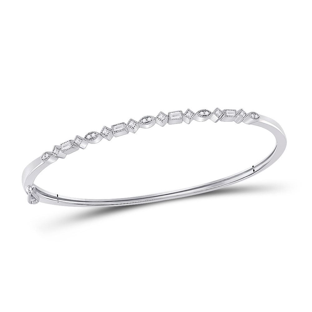 REF-54F5W - 1/3 CTW Womens Princess Diamond Stackable Bangle Bracelet 10kt White Gold - REF-54F5W
