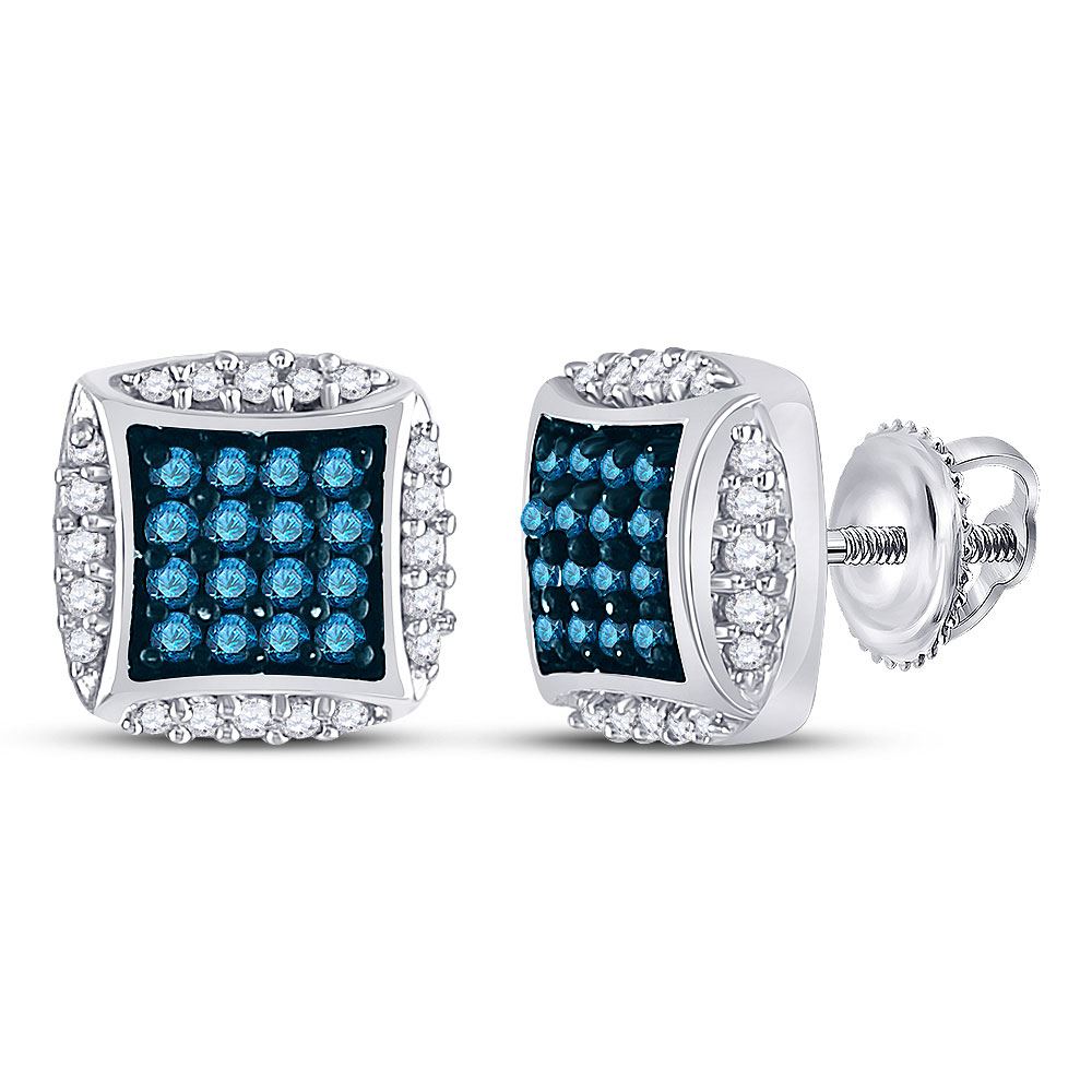 REF-19T2V - 1/3 CTW Womens Round Blue Color Enhanced Diamond Square Cluster Earrings 10kt White Gold - REF-19T2V