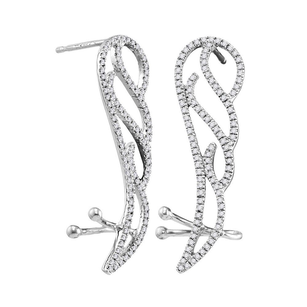 REF-34H3R - 1/3 CTW Womens Round Diamond Angel Wing Climber Earrings 10kt White Gold - REF-34H3R
