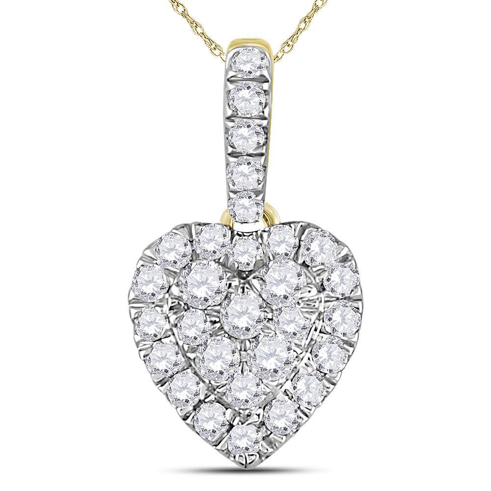 REF-27T3V - 1/3 CTW Womens Round Diamond Heart Pendant 14kt Yellow Gold - REF-27T3V