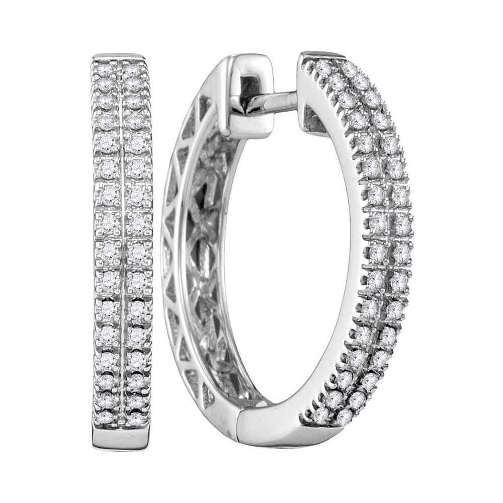 REF-47N6A - 1/3 CTW Womens Round Diamond Hoop Earrings 10kt White Gold - REF-47N6A