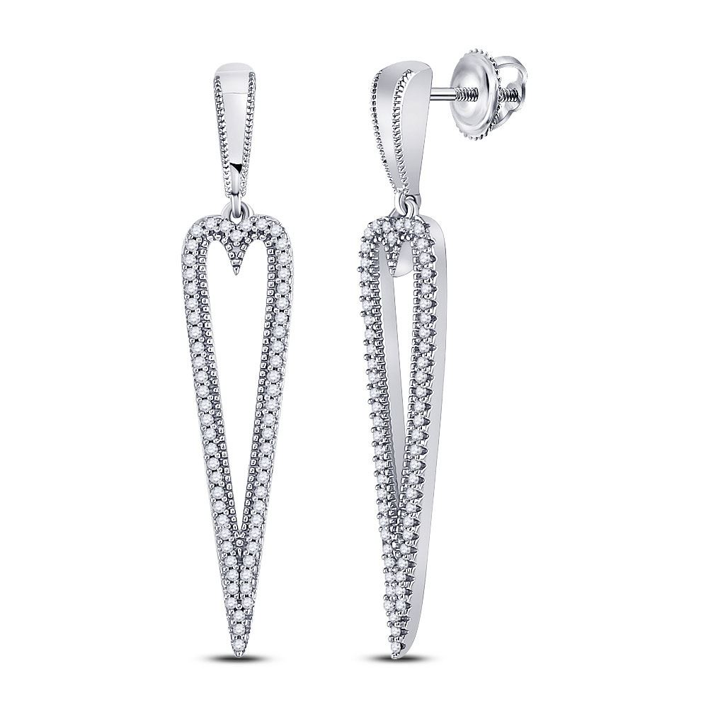 REF-37W5H - 1/3 CTW Womens Round Diamond Oblong Heart Dangle Earrings 10kt White Gold - REF-37W5H