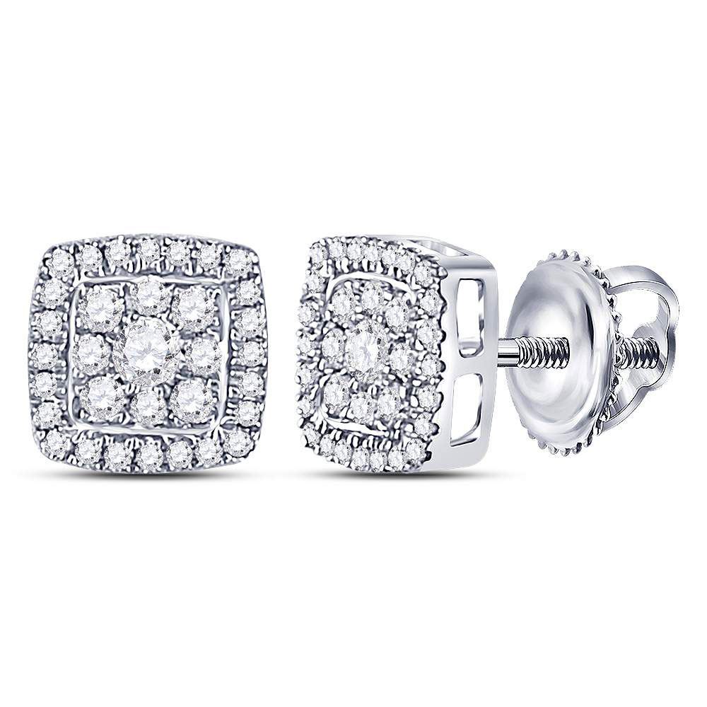 REF-34W3H - 1/3 CTW Womens Round Diamond Square Cluster Earrings 14kt White Gold - REF-34W3H