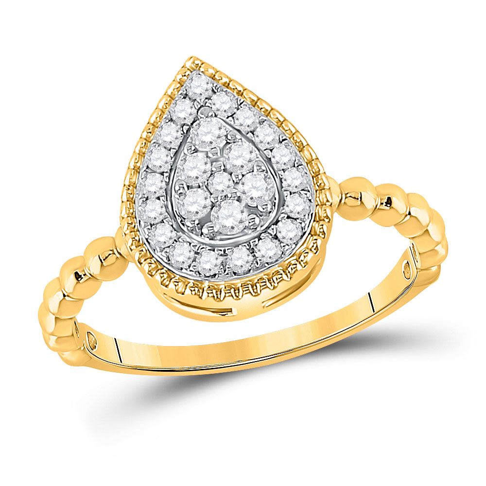 REF-36T2V - 1/3 CTW Womens Round Diamond Teardrop Cluster Ring 10kt Yellow Gold - REF-36T2V