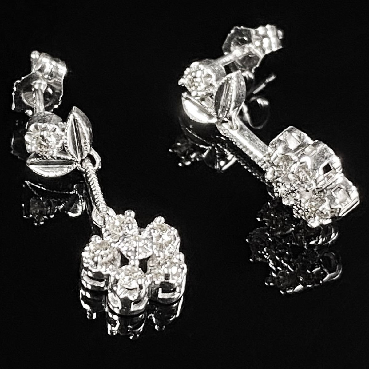 1.3 DWT 14 KT Wht Gold w/ Diamonds Earrings