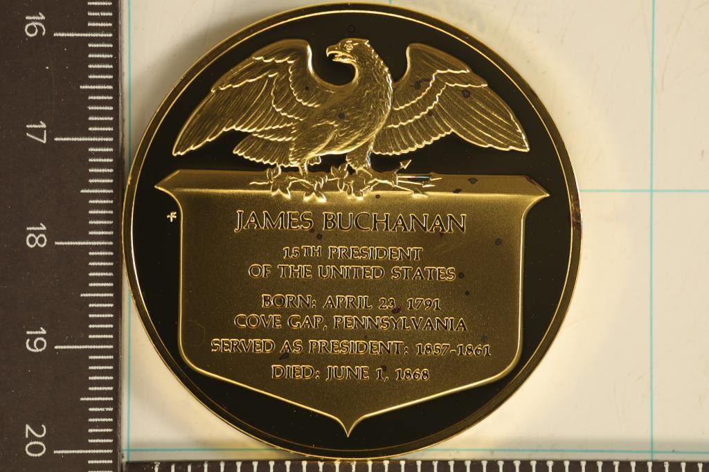 SILVER PRESIDENTIAL ROUND. PROOF IN HARD PLASTIC CAPSULE "JAMES BUCHANAN"