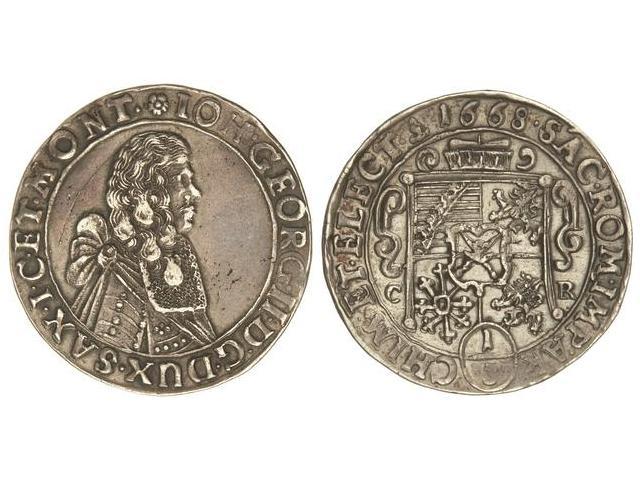 1/3 Thaler. 1668. JUAN GREGORIO II. SAJONIA. C.R. AR. Pátina. Reverso similar al KM-547. (Pequeñas roturas de cuño). KM-517sim. MBC+.