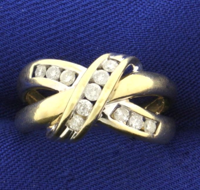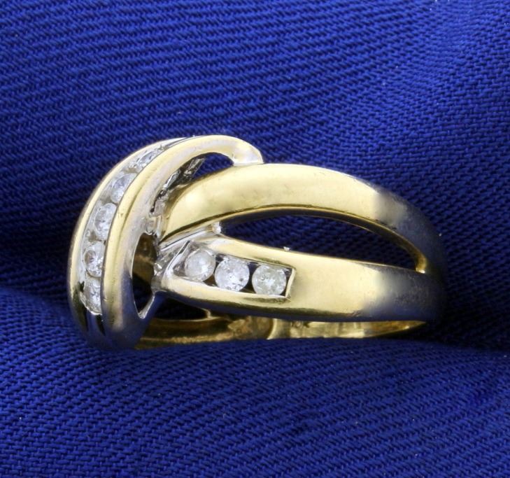 In 10K Yellow and White Gold. Contains eleven high quality .03ct round Diamonds, I clarity/I color. Size 8. 4.3g