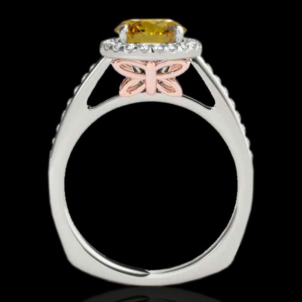 REF-190A9N - SKU: 34341 ---- 1.3 ctw Certified SI Fancy Intense Diamond Halo Ring 10k White & Rose Gold