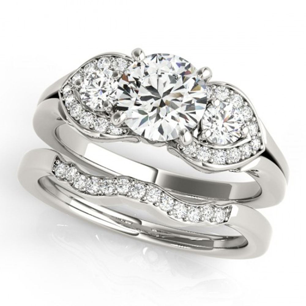 REF-156F8M - SKU: 32012 ---- 1.3 ctw Certified VS/SI Diamond 3 Stone 2pc Wedding Set 14k White Gold
