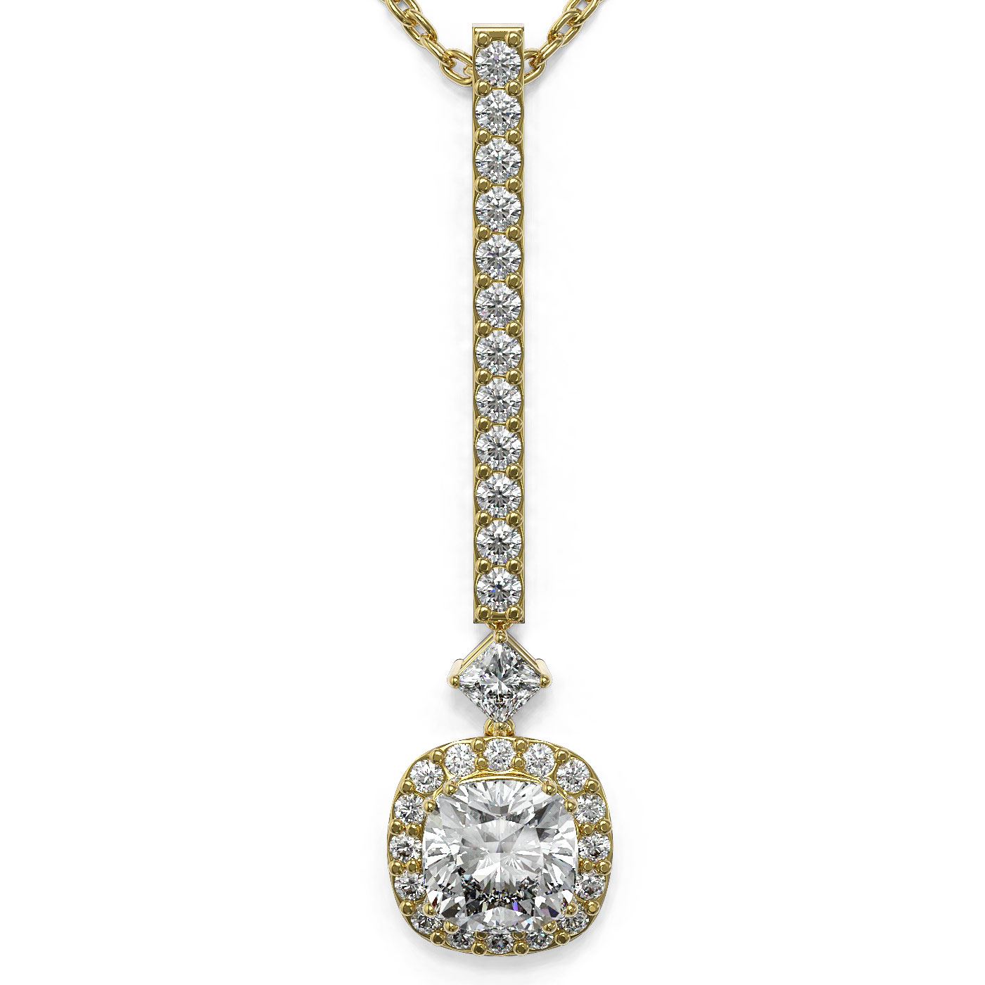 REF-156M8G - SKU: 49403 ---- 1.3 ctw Cushion Cut Diamond Designer Necklace 18K Yellow Gold