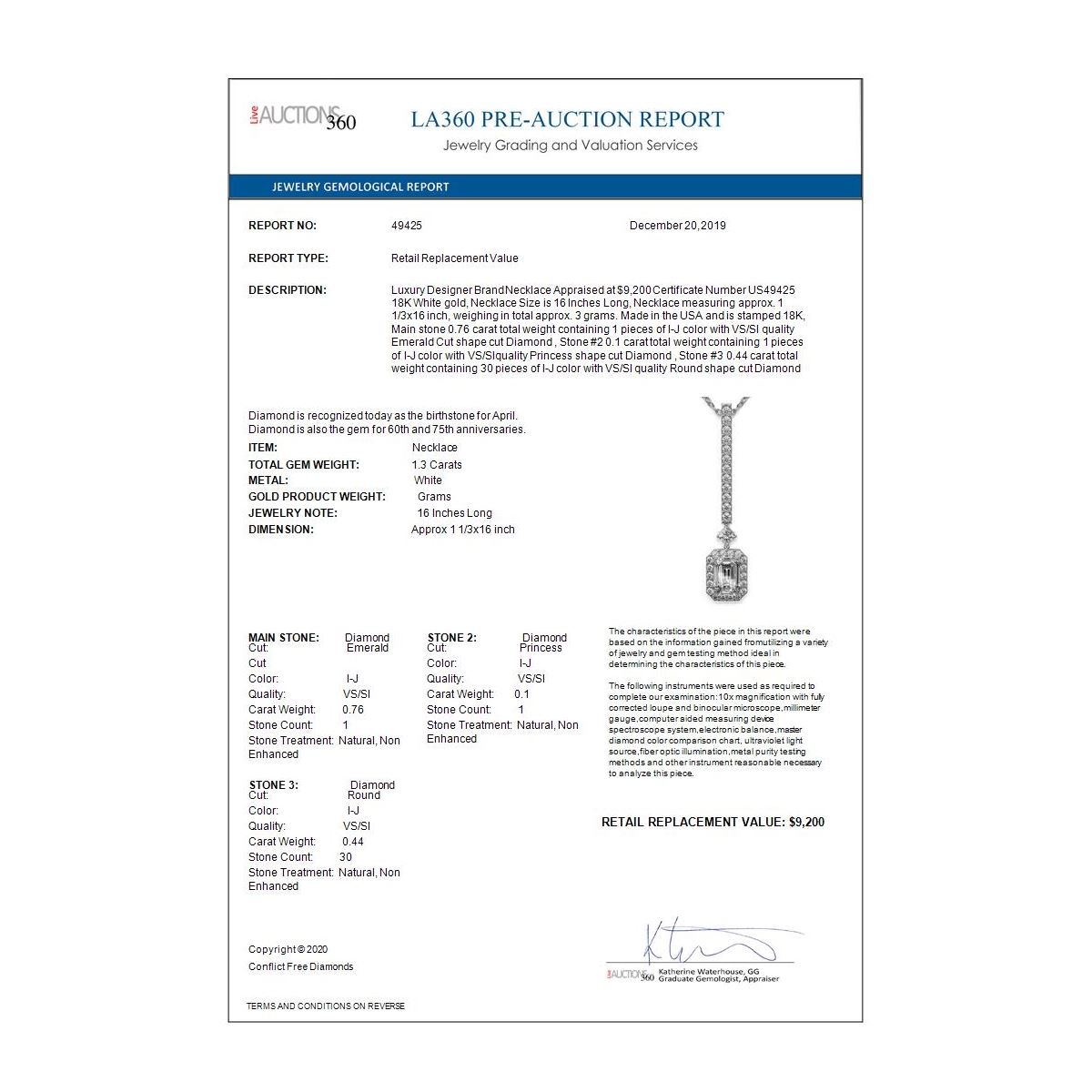 REF-208N8F - SKU: 49425 ---- 1.3 ctw Emerald Cut Diamond Designer Necklace 18K White Gold