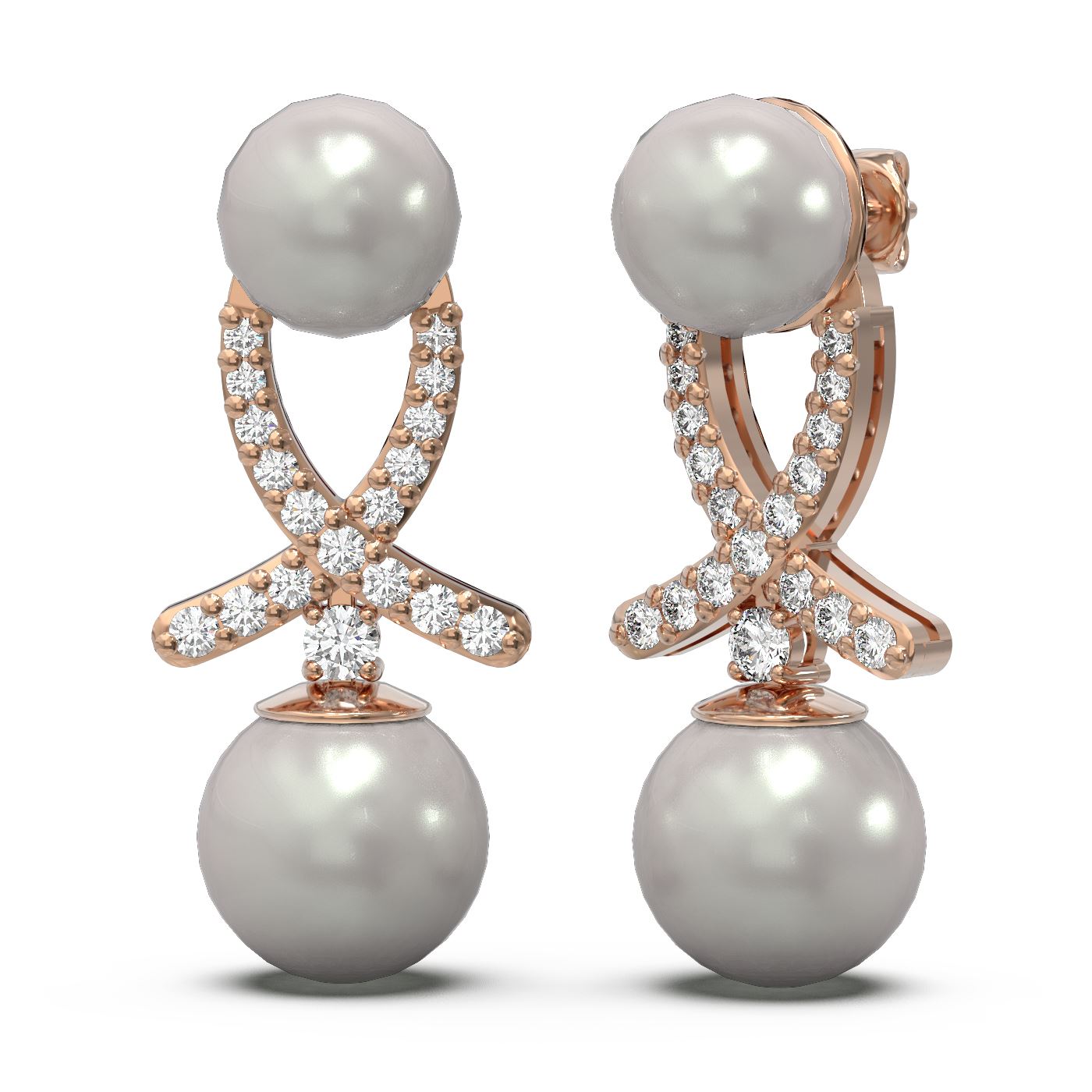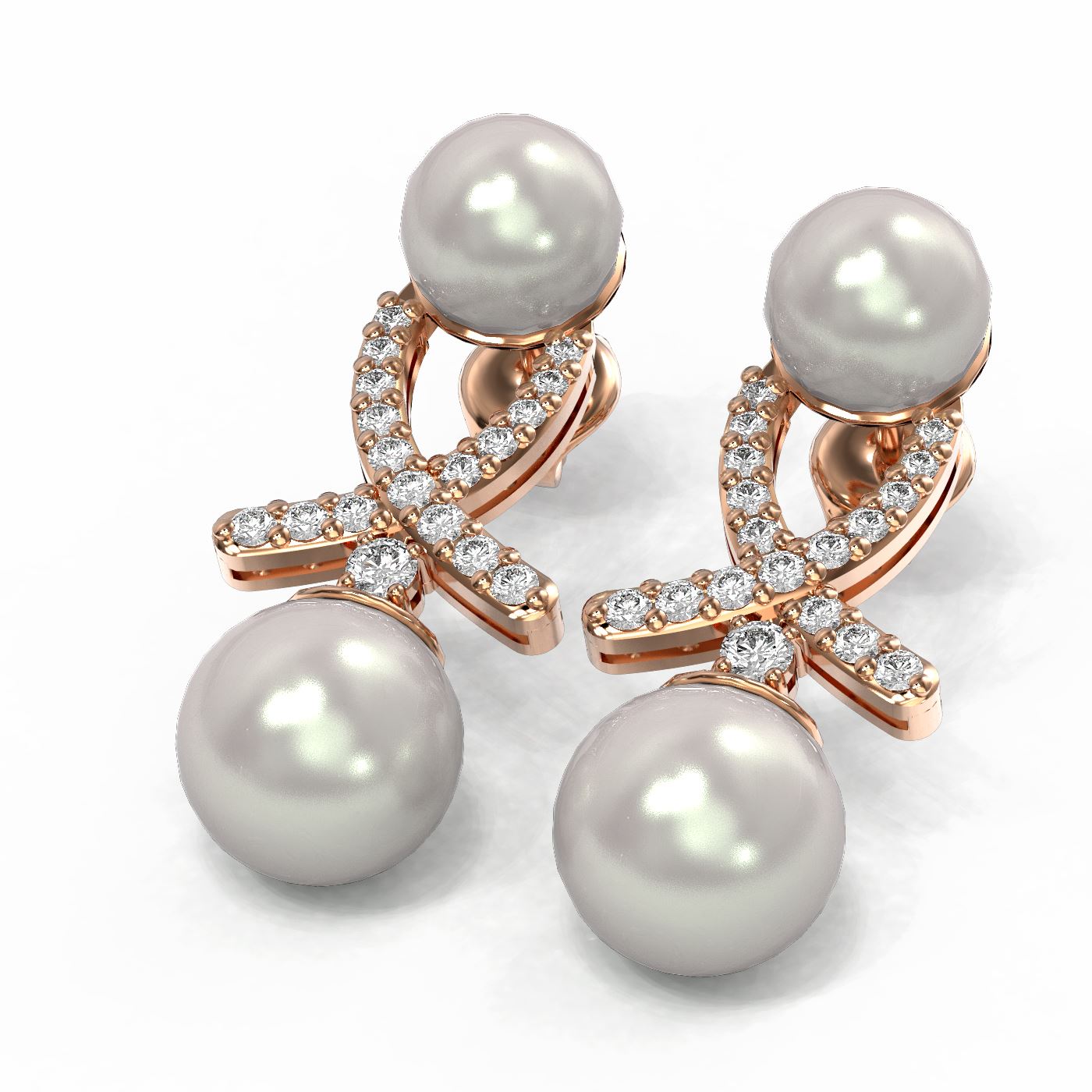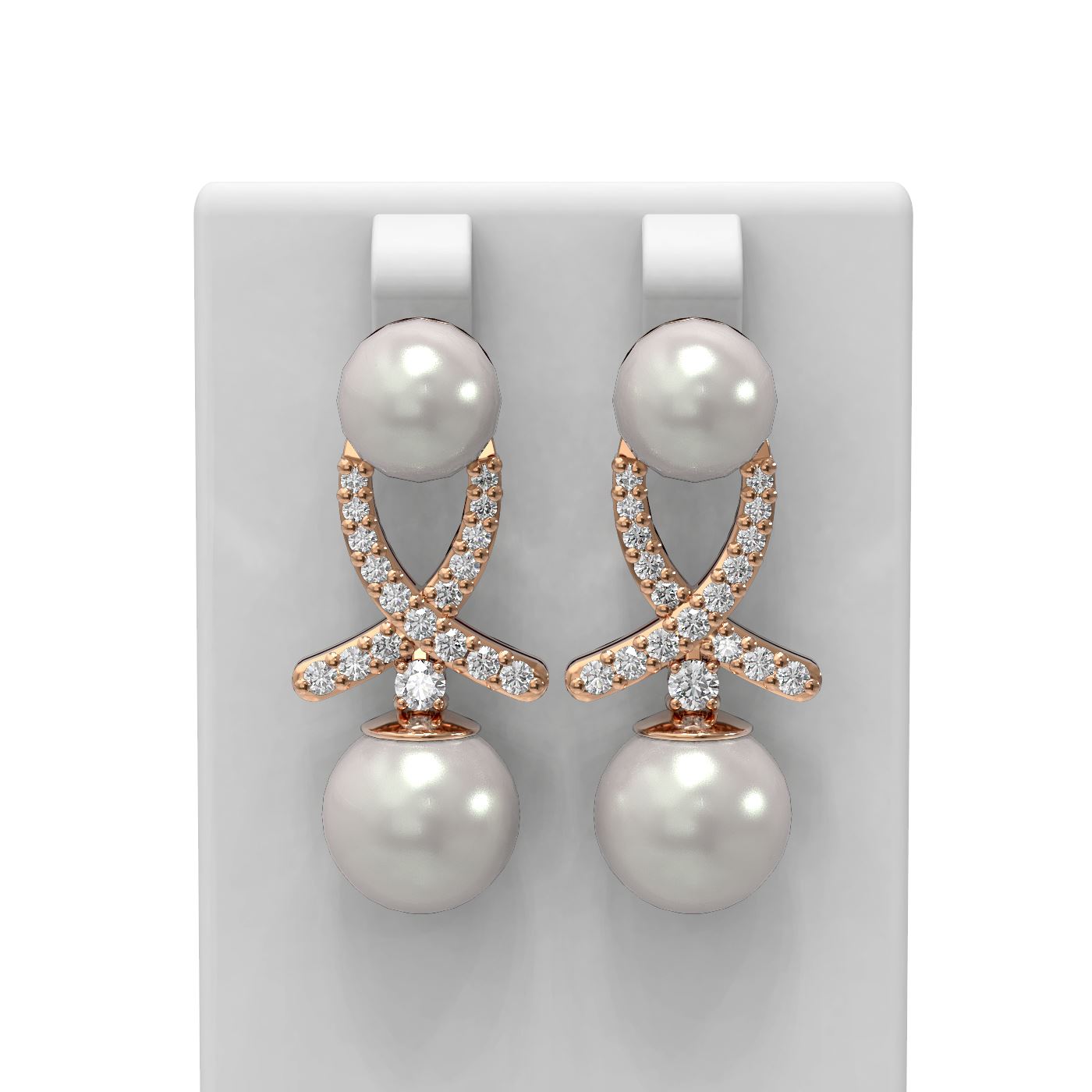 REF-182W8H - SKU: 61506 ---- 1.3 ctw Pearl & Diamond Earrings 18K Rose Gold