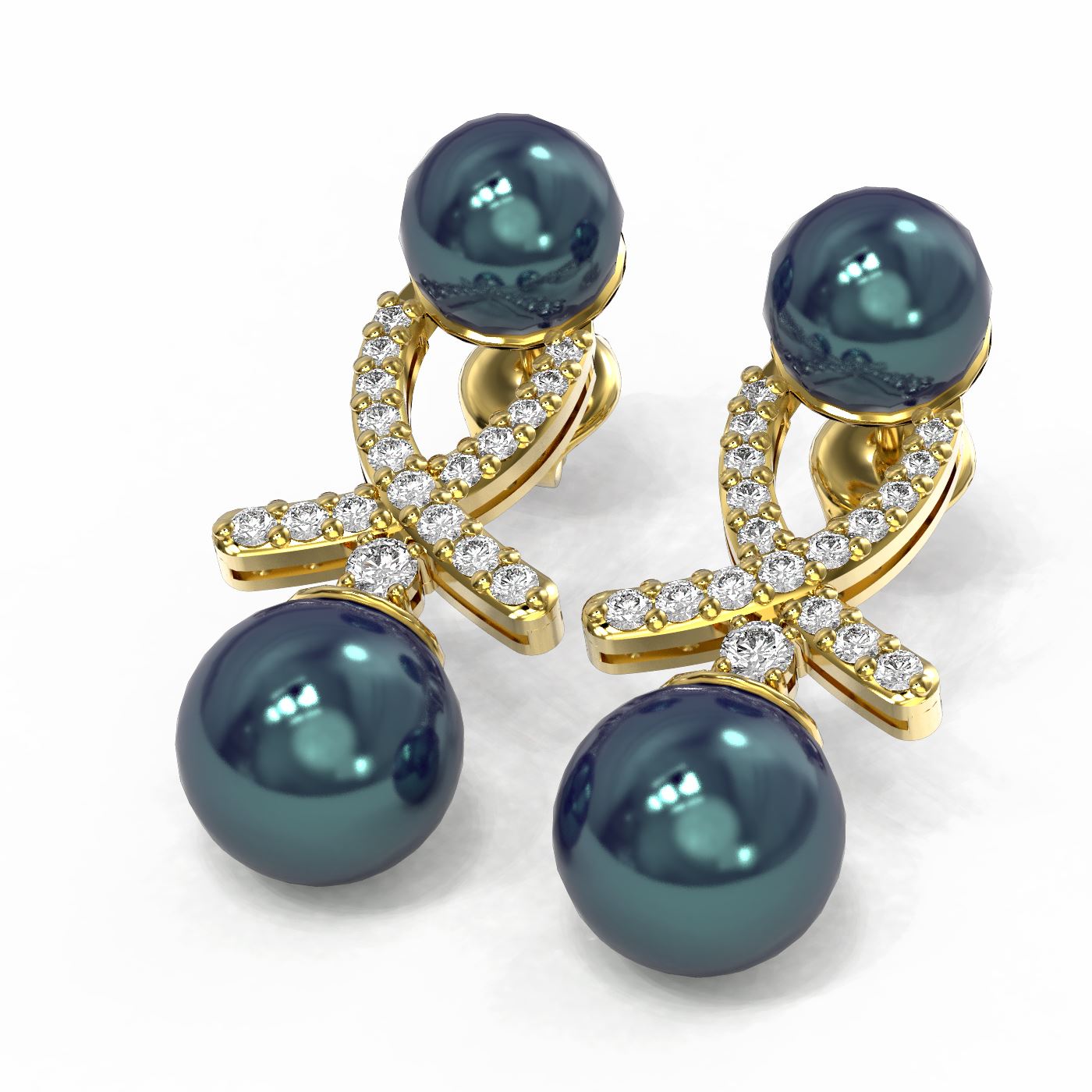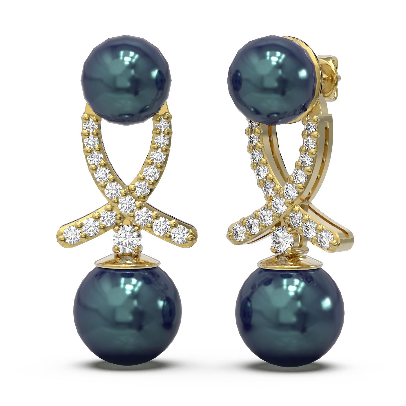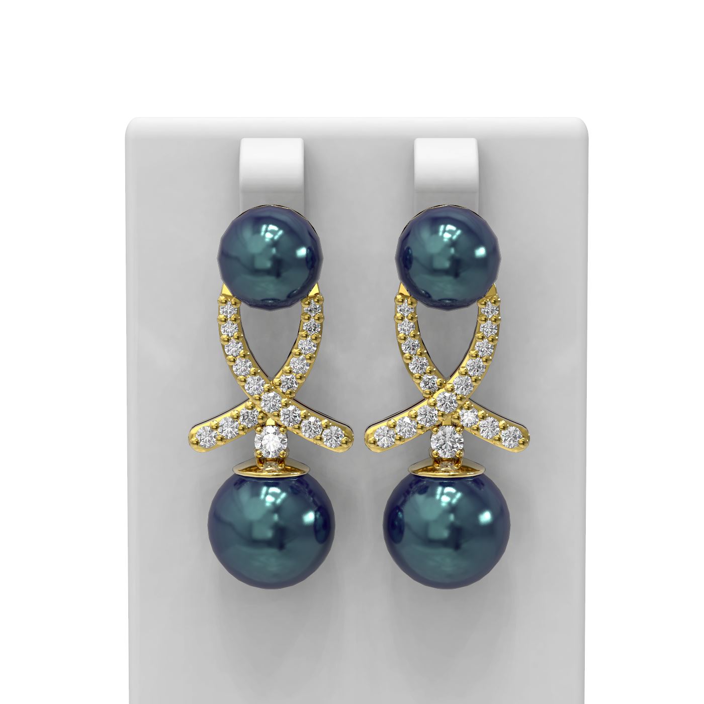 REF-182M8G - SKU: 61504 ---- 1.3 ctw Pearl & Diamond Earrings 18K Yellow Gold