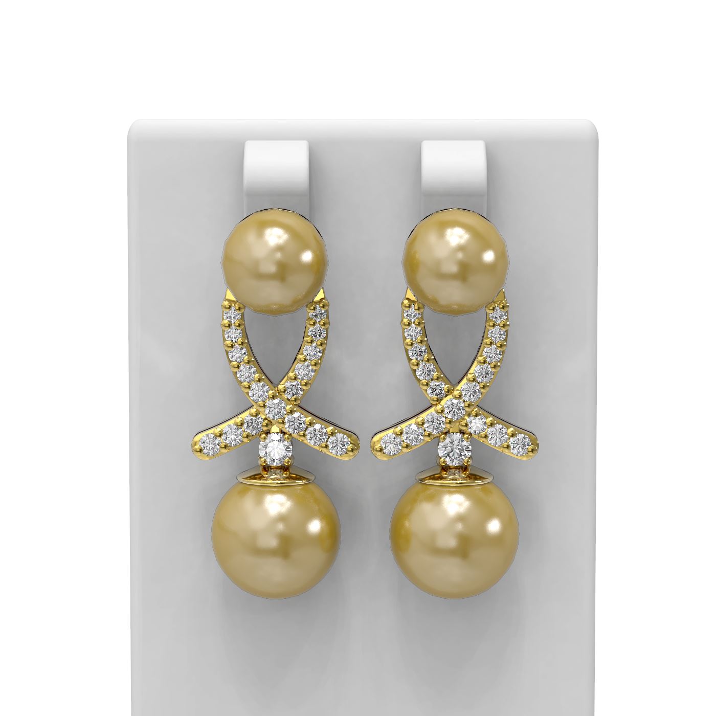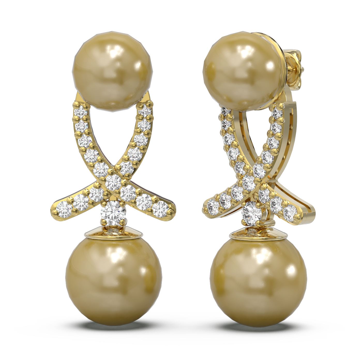 1.3 ctw Pearl & Diamond Earrings 18K Yellow Gold