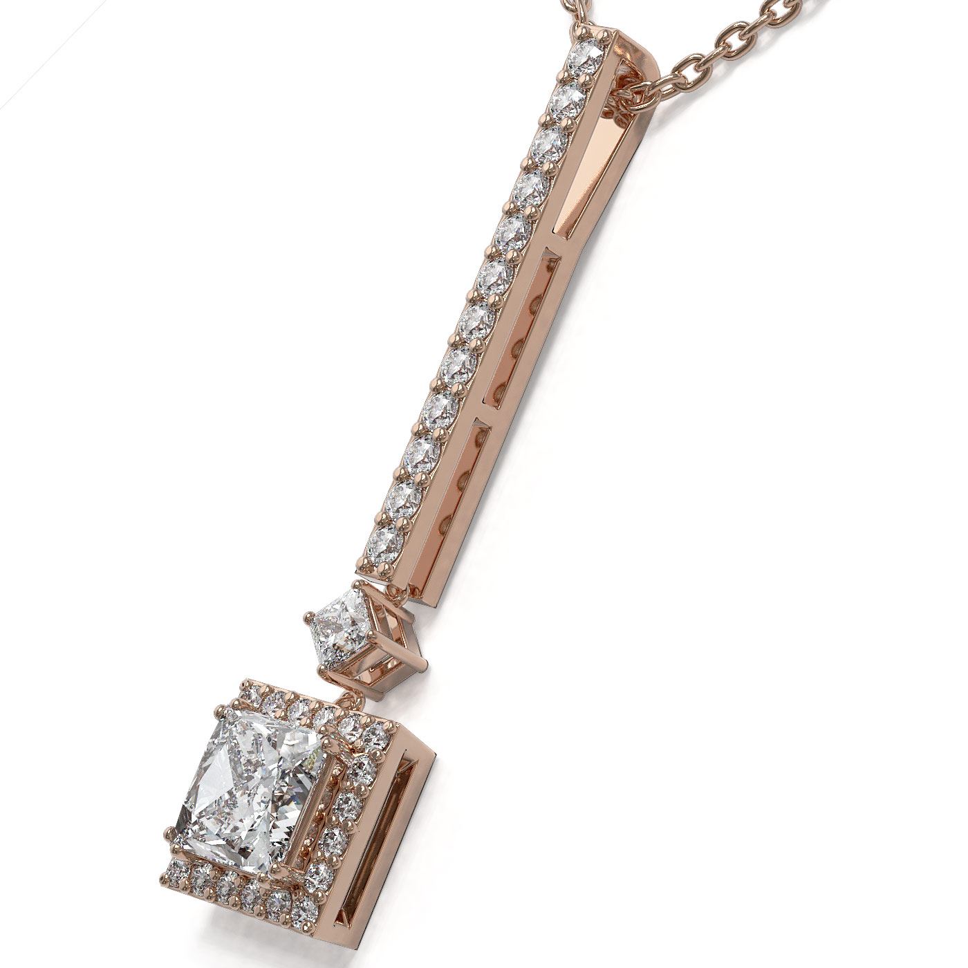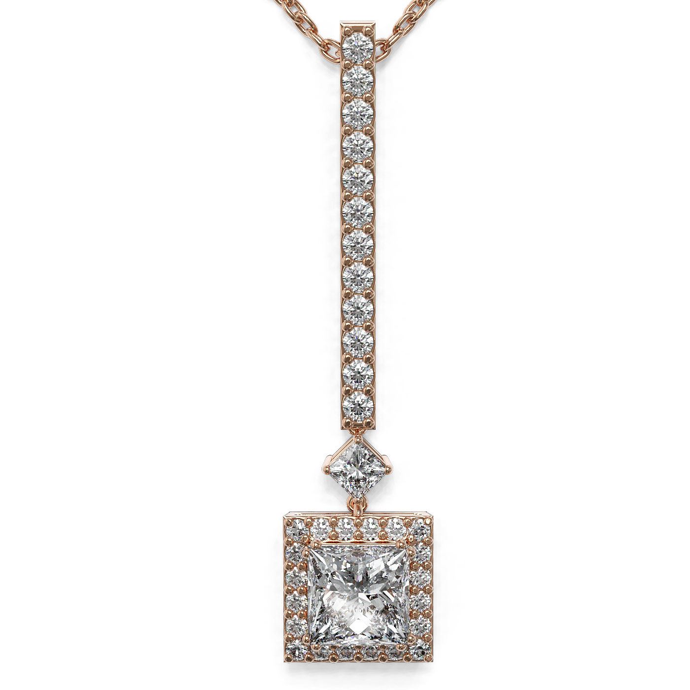 SKU: 49408 ---- 1.3 ctw Princess Cut Diamond Designer Necklace 18K Rose Gold