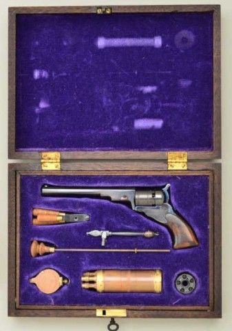 1/3 scale Miniature Colt Texas Paterson cased with accessories by unknown maker. The miniature and accessories are good quality and show some age. Fully operating. Est.; $1,500-$3,000.