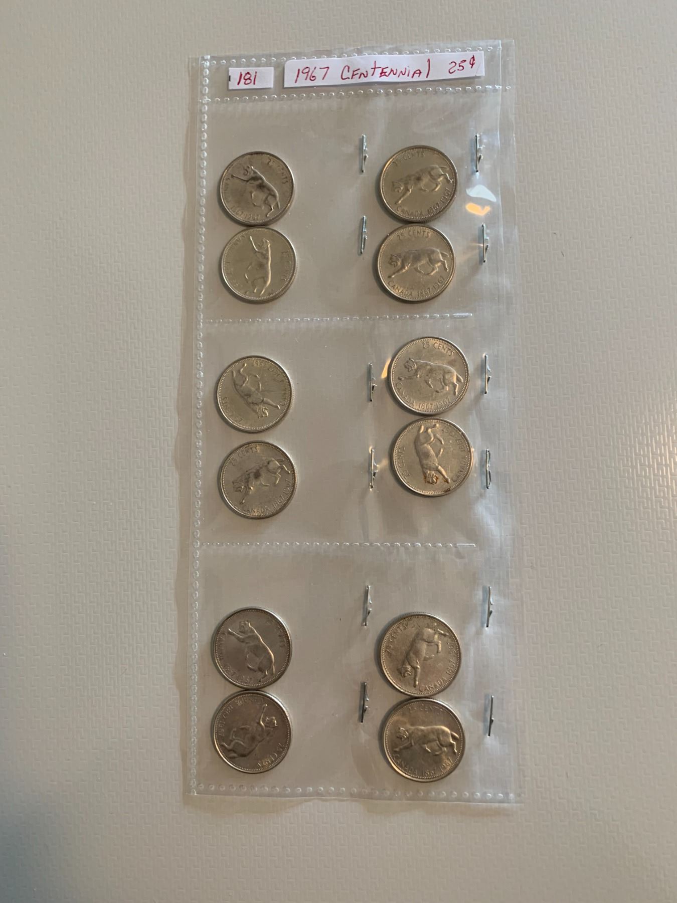 1/3 sheet of 1967 centennial 25 cent coins