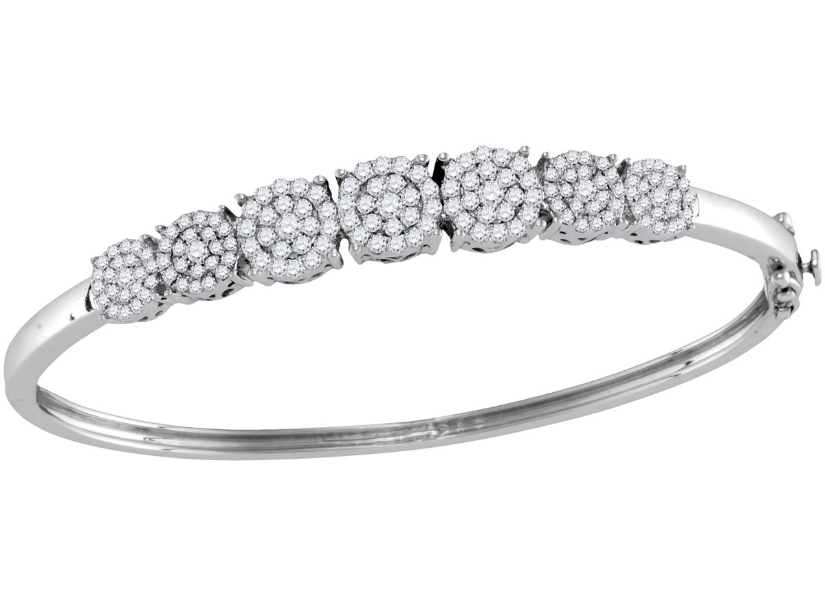 REF-179F9M ---- 1.30 CTW Natural Diamond Cluster Bangle Bracelet 10K White Gold - SKU: GD115570
