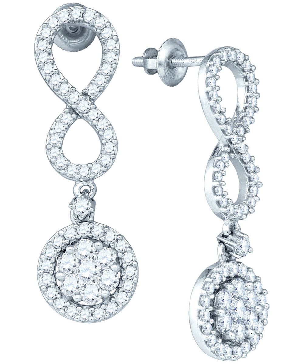 REF-129Y9V ---- 1.30 CTW Natural Diamond Cluster Dangle Infinity Earrings 10K White Gold - SKU: GD72373