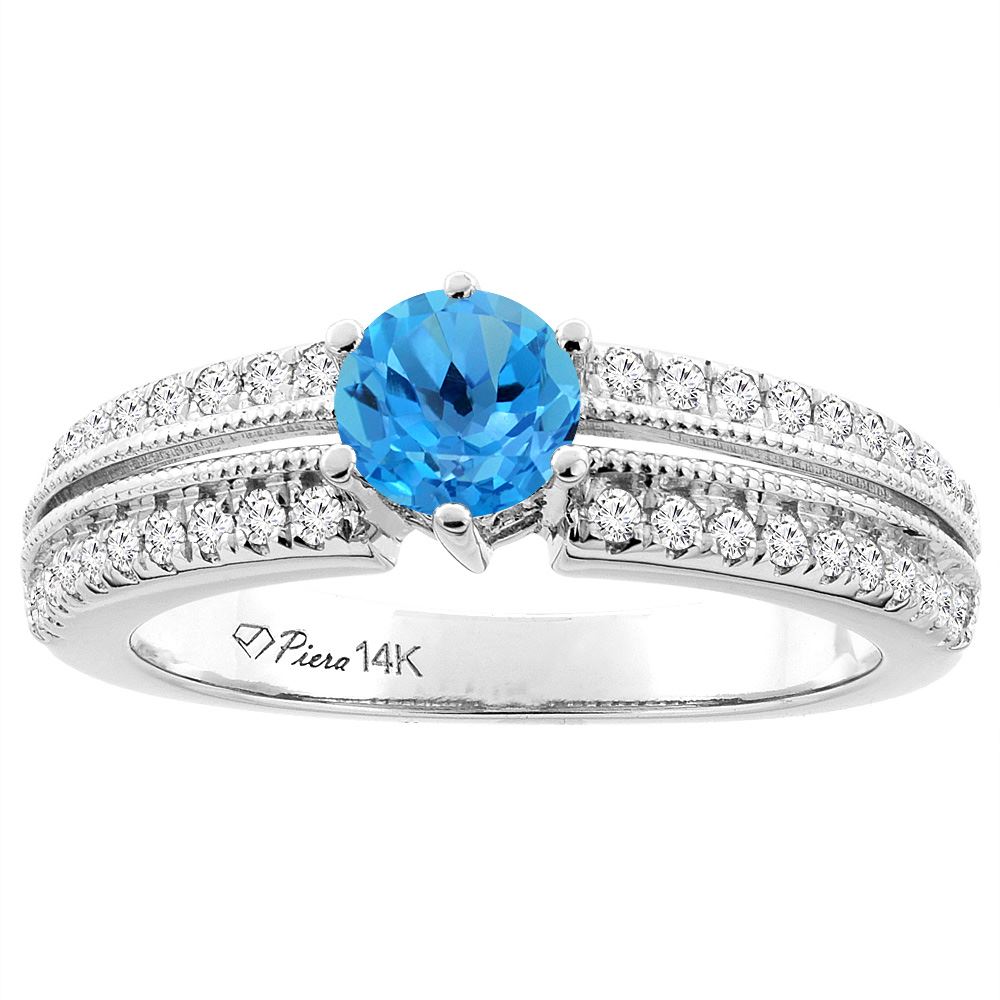 REF-67K3W - SKU: SC-CW404380 ---- 1.30 CTW Swiss Blue Topaz & Diamond Ring 14K White Gold