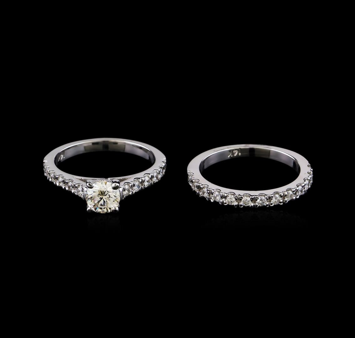 One set electronically tested 14KT white gold lady's cast wedding ring with a cathedral halo with a bright polish finish. The featured lady's ring has a double shank measuring 4.22 millimeters in width. Identified with markings of "14K". Condition is new, good workmanship. Containing: One prong set round brilliant cut diamond, measuring 5.66 - 5.60 x 3.55mm (depth est.) approximate weight of 0.70ct. Graded in the setting. Clarity: SI-3. Color: H - I. Cut Good Twenty-Five prong set round brilliant cut diamonds, measuring 1.90 - 1.80 x 1.15mm (depth est.) approximate total weight of 25 Stones = 0.60ct. Graded in the setting. Clarity: SI-1 to SI-2. Color: G - I. Cut Good. Total Weight of Diamonds 1.30ct. Total Weight of Ring 6.00gm. GAS Appraised at $7,325.00.