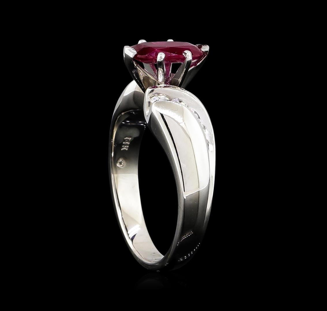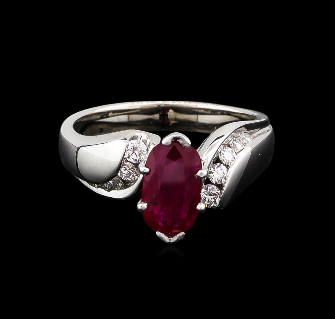 One ring featuring: 14KT white gold weighing 7.48 grams containing one ruby with a total weight of 1.30ct and side diamonds with a total weight of 0.25ct.