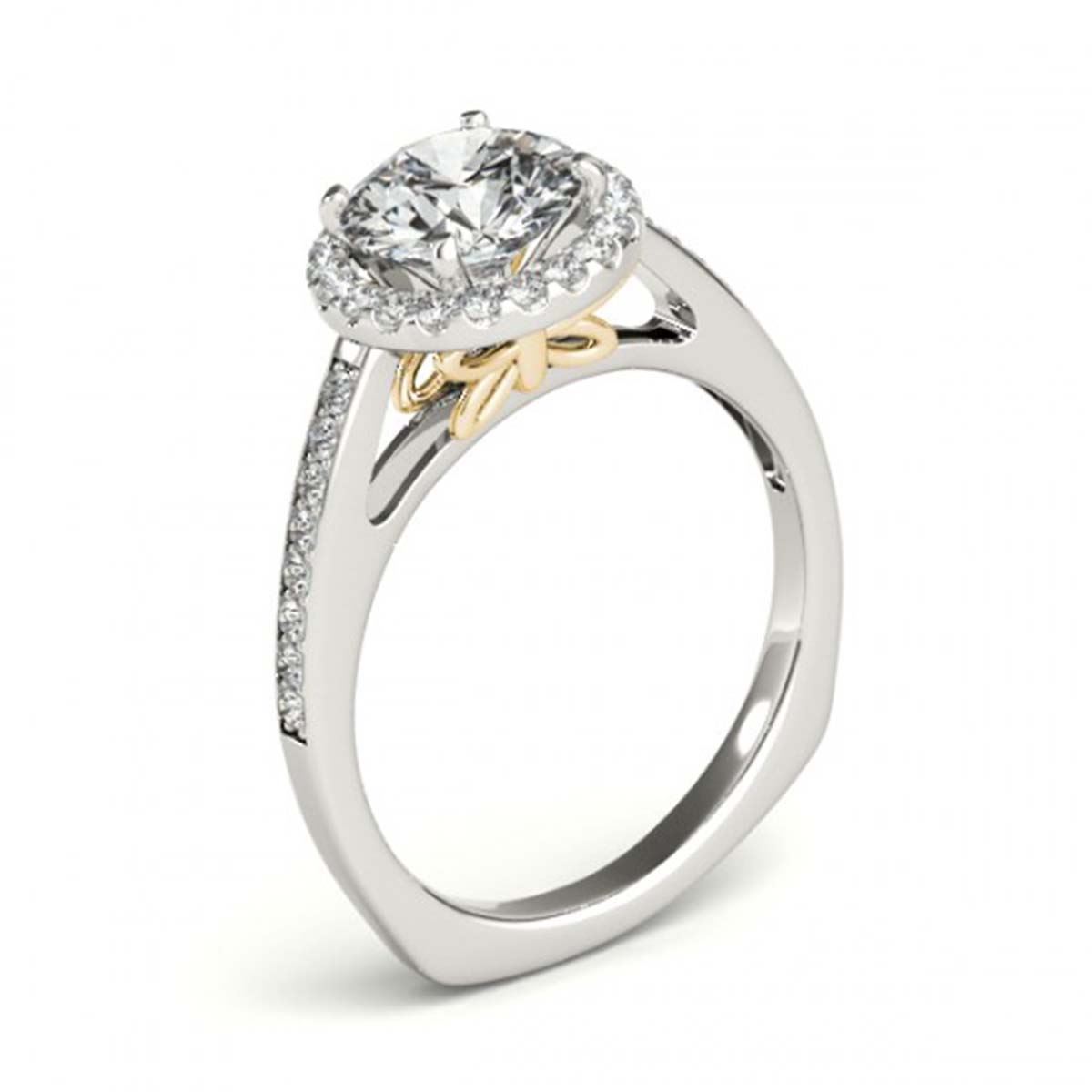 REF-272M7F - SKU:24814 ---- 1.30 ctw VS/SI Diamond Solitaire Halo Ring 14K White & Yellow Gold