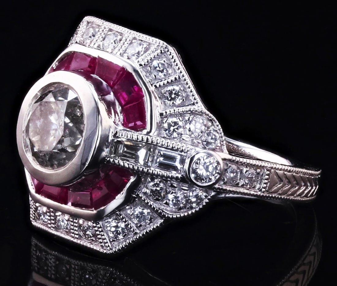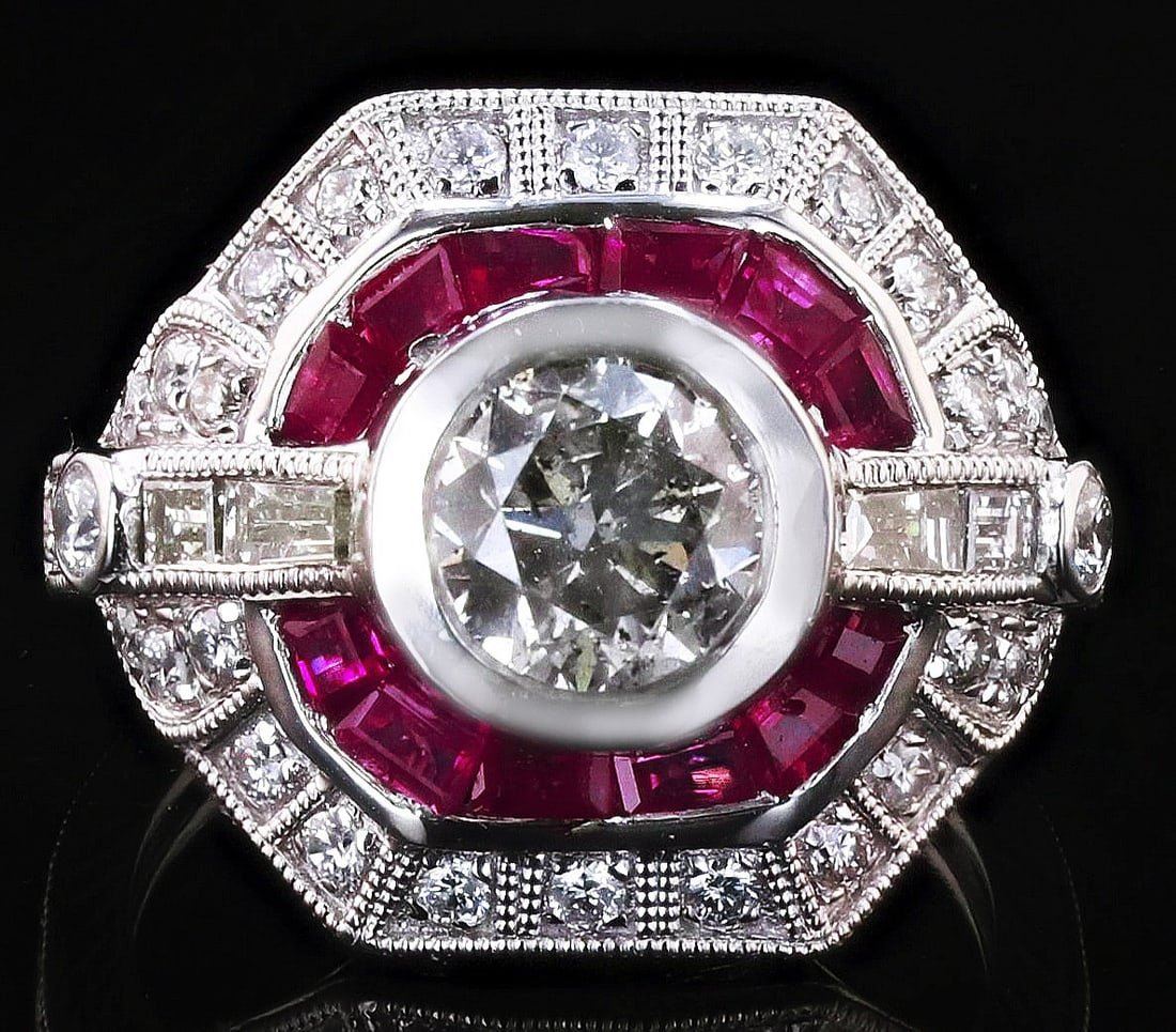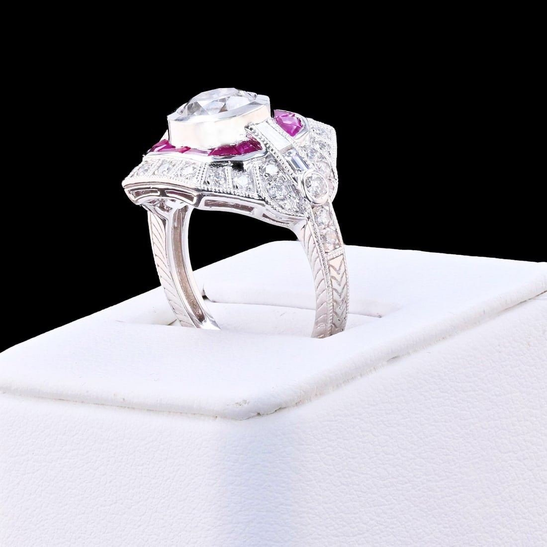 1.30CT DIAMOND & 0.65CT RUBY PLATINUM RING 2.07CTW