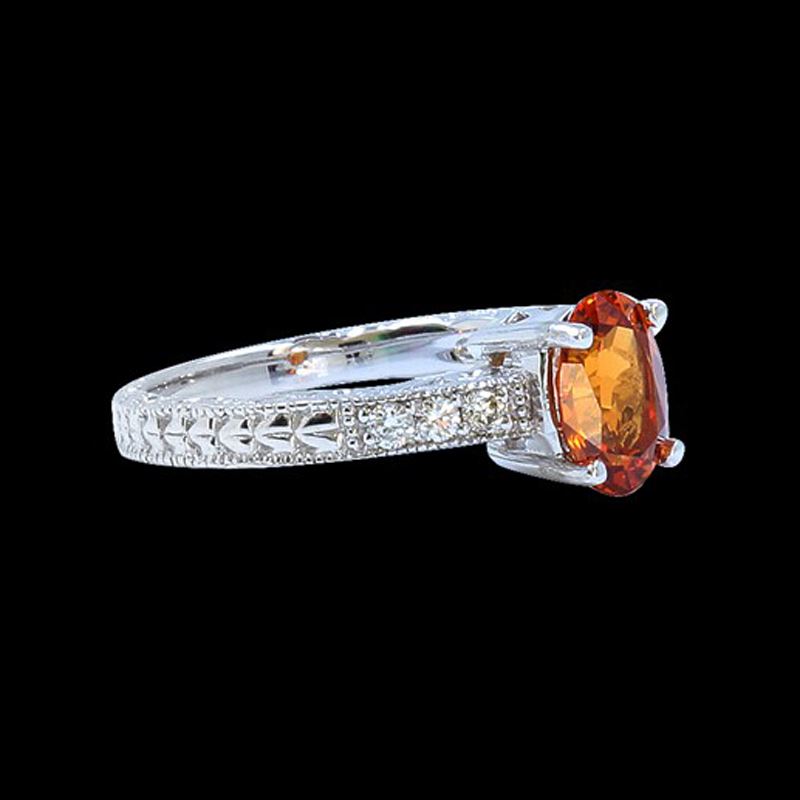 14K WHITE GOLD NATURAL SPESSARTITE RING: 3.17GRAM /SPESSARTITE :1.30CT/ DIAMOND RD :0.14CT/#GVR1233