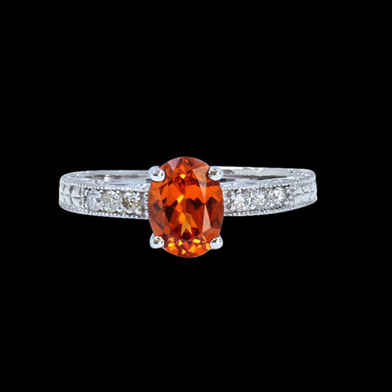 14K WHITE GOLD NATURAL SPESSARTITE RING: 3.17GRAM /SPESSARTITE :1.30CT/ DIAMOND RD :0.14CT/#GVR1233