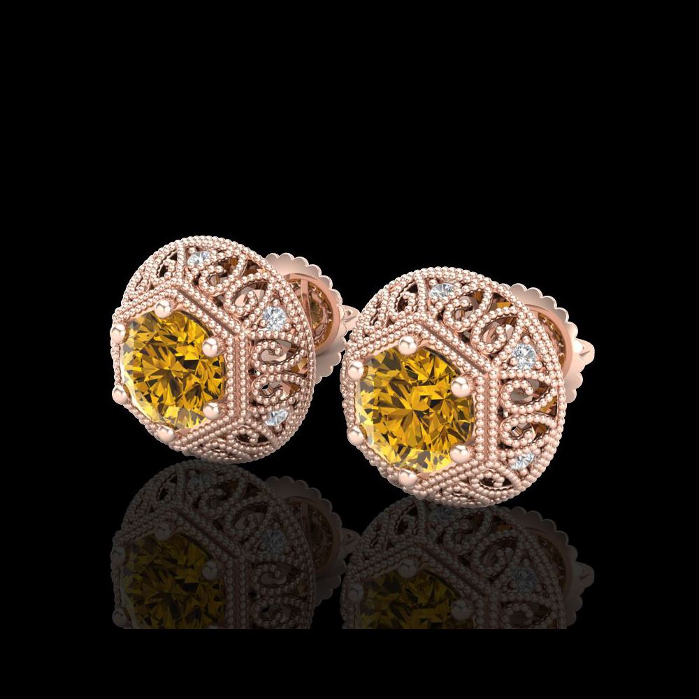 1.31 ctw Intense Fancy Yellow Diamond Art Deco Earrings 18K Rose Gold