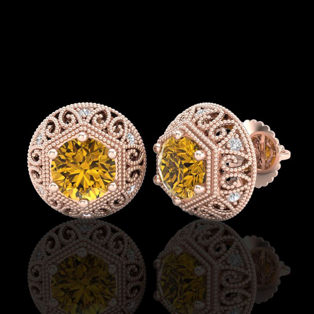 REF-149R3K - SKU: 37561 ---- 1.31 ctw Intense Fancy Yellow Diamond Art Deco Earrings 18k Rose Gold