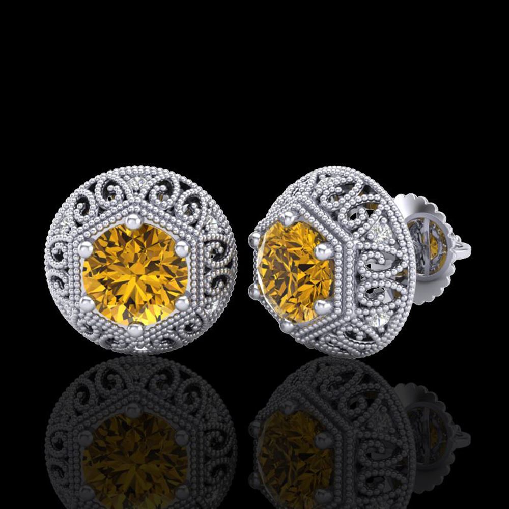 REF-149W3H - SKU: 37560 ---- 1.31 ctw Intense Fancy Yellow Diamond Art Deco Earrings 18k White Gold