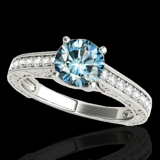 REF-154Y4K -34948 ---- 1.32 CTW Si Certified Fancy Blue Diamond Solitaire Ring 10K White Gold ---- Luxury Designer Brand Ring Appraised at $10,200 Certificate Number US34948 10k White gold, Ring Size is 7, Ring measuring approx. Uniform, weighing in total approx. 4.2 grams. Made in the USA and is stamped 10k, Main stone 1 carat total weight containing 1 pieces of Intense Fancy Blue color with SI quality Round shape cut Diamond , Stone #2 0.32 carat total weight containing 16 pieces of H-I color with VS/SI quality Round shape cut Diamond