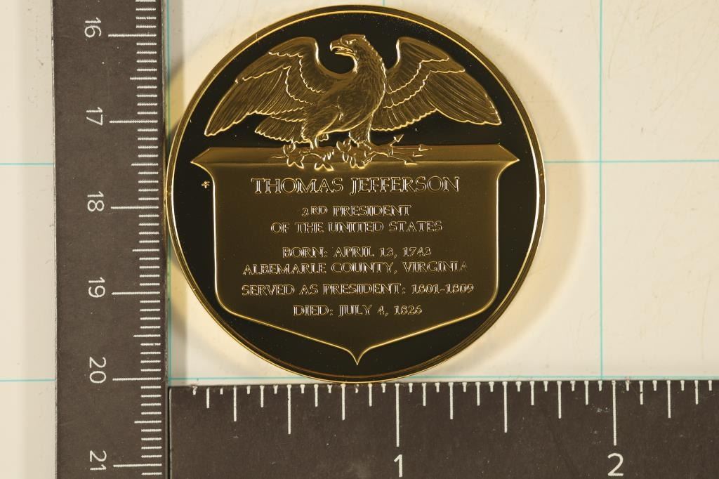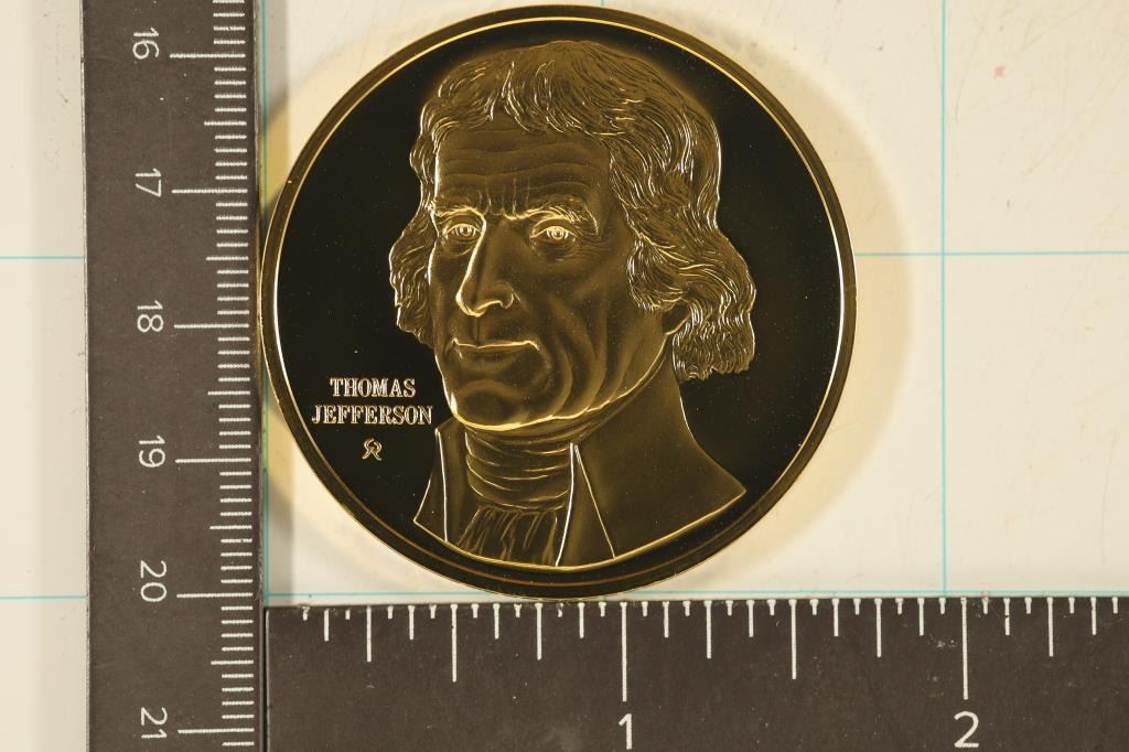 SILVER PROOF ROUND " THOMAS JEFFERSON" IN HARD PLASTIC CAPSULE.