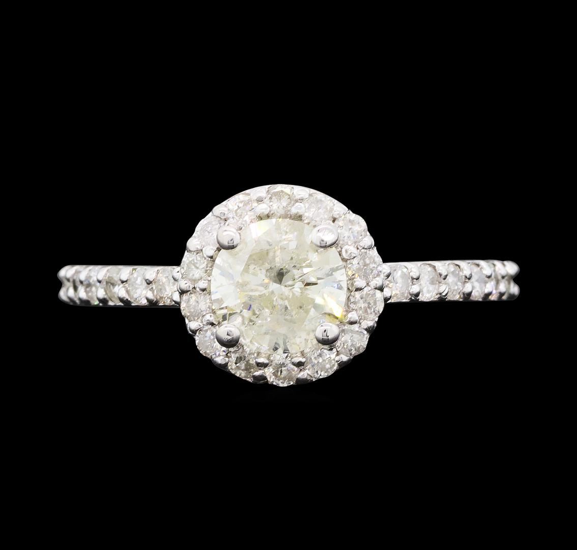 One electronically tested 14KT white gold lady's cast wedding ring with a cathedral halo with a bright polish finish. The featured lady's ring has a shank measuring 1.83 millimeters wide. Identified with markings of '14K'. Condition is new, good workmanship. Containing: One prong set round brilliant cut diamond, measuring 6.04 - 6.01 x 3.51mm (depth est.) approximate weight of 0.80ct. Graded in the setting. Color I - J Clarity I-2 Cut Good Twenty-Eight prong set round brilliant cut diamonds, measuring 1.80 - 1.65 x 1.04mm (depth est.) approximate total weight of 28 Stones = 0.52ct. Graded in the setting. Color G - I Clarity SI-2 to I-1 Cut Good. Total Weight of Diamonds 1.32ct.. Total Weight of Ring 3.20gm GAS Appraised at $4,565.00.