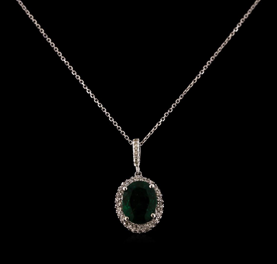 One pendant with chain featuring: 14KT white gold weighing 1.20 grams containing one emerald center weighing 1.32ct and diamonds weighing 0.19ctw.
