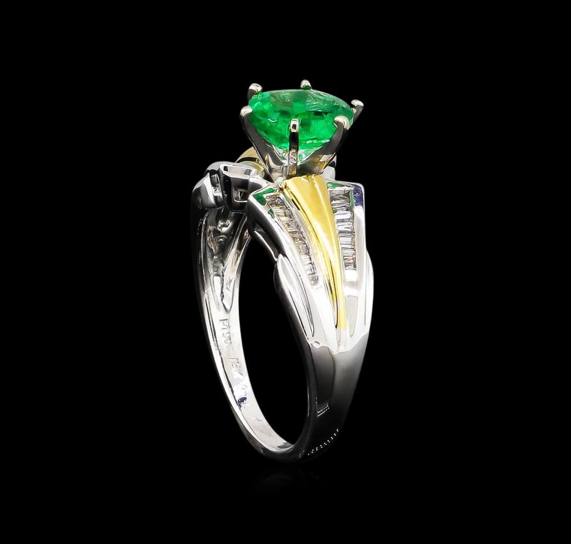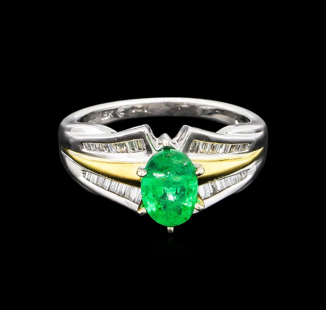 One ring featuring: 18KT two-tone gold and platinum weighing 9.70 grams containing one emerald with a total weight of 1.32ct and side diamonds with a total weight of 0.50ct.
