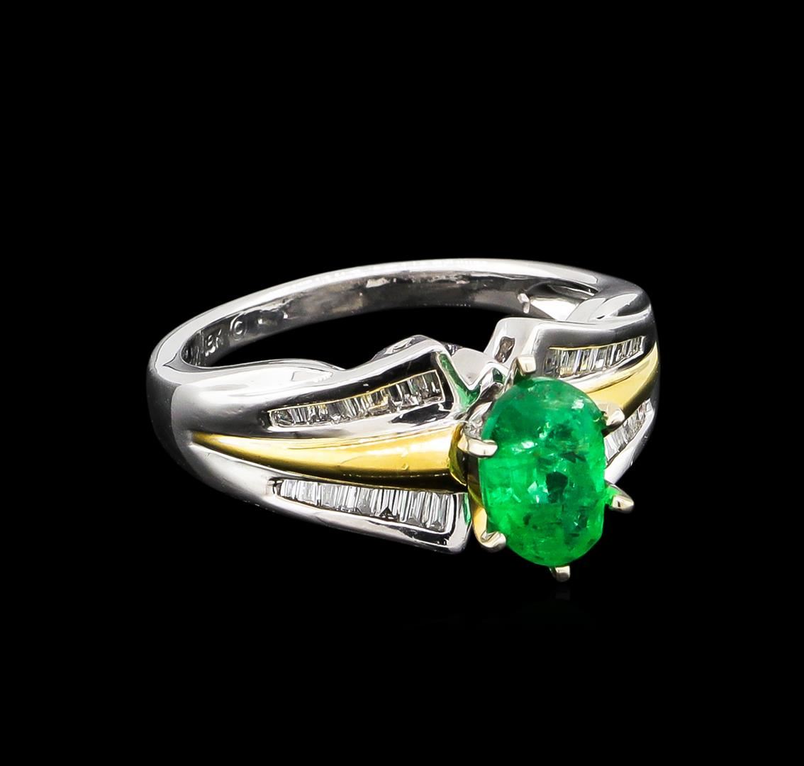 One ring featuring: 18KT two-tone gold and platinum weighing 9.70 grams containing one emerald with a total weight of 1.32ct and side diamonds with a total weight of 0.50ct.