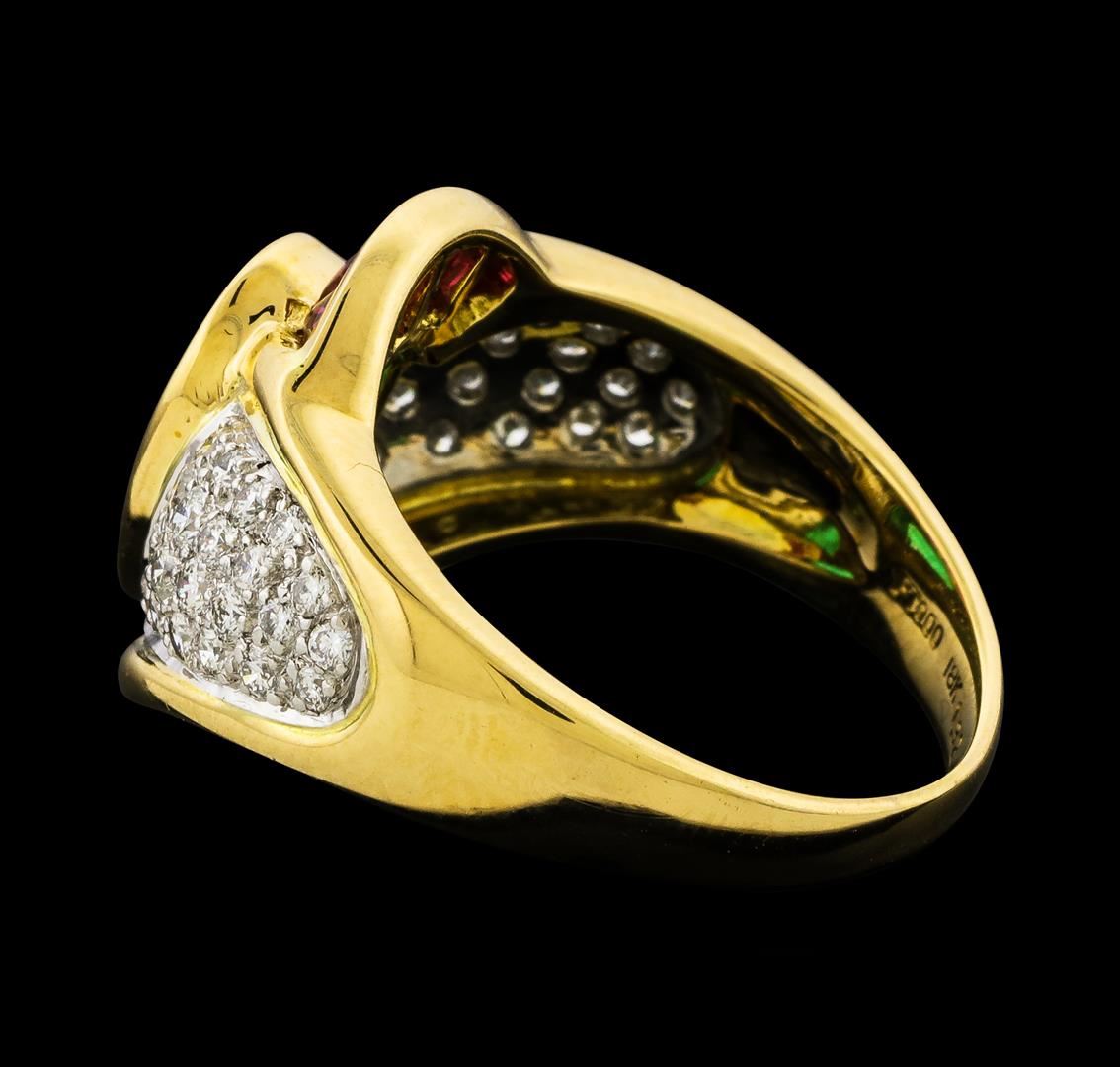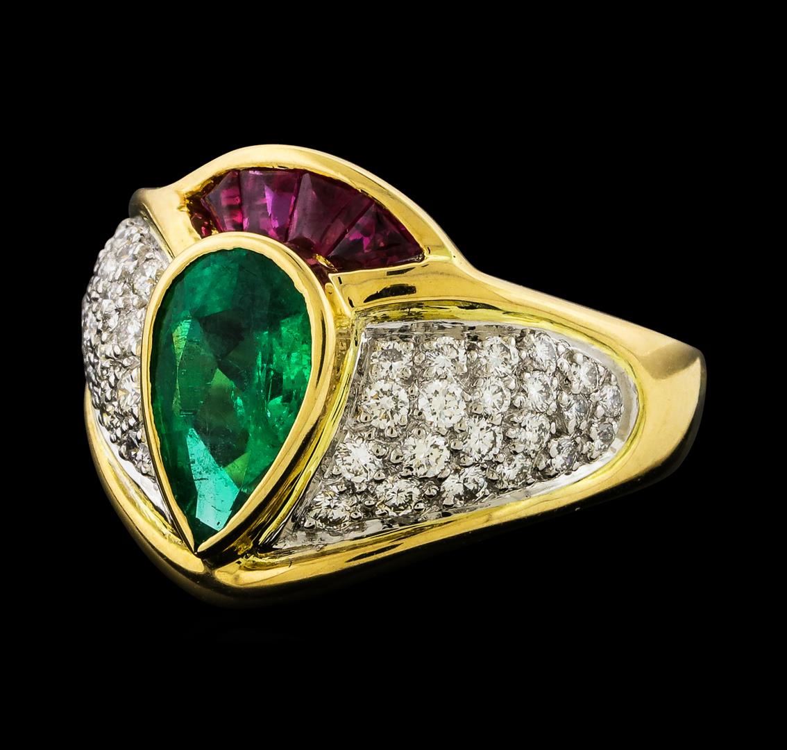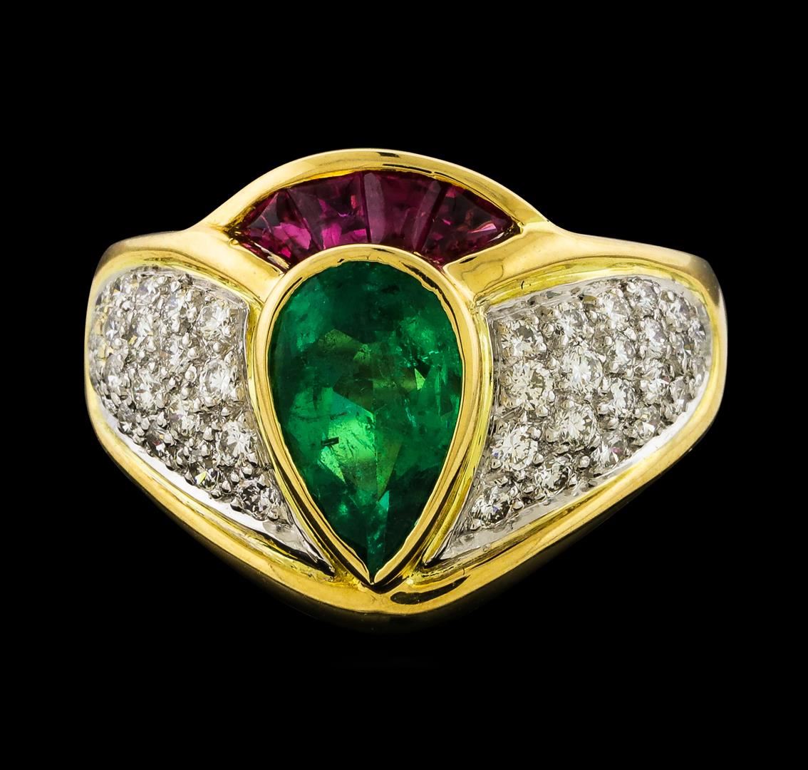 One ring featuring: 18KT Yellow Gold containing Emerald with a total weight of 1.32ct and Diamonds with a total weight of 0.48ct. Total Weight of Ring: 7.2 grams.