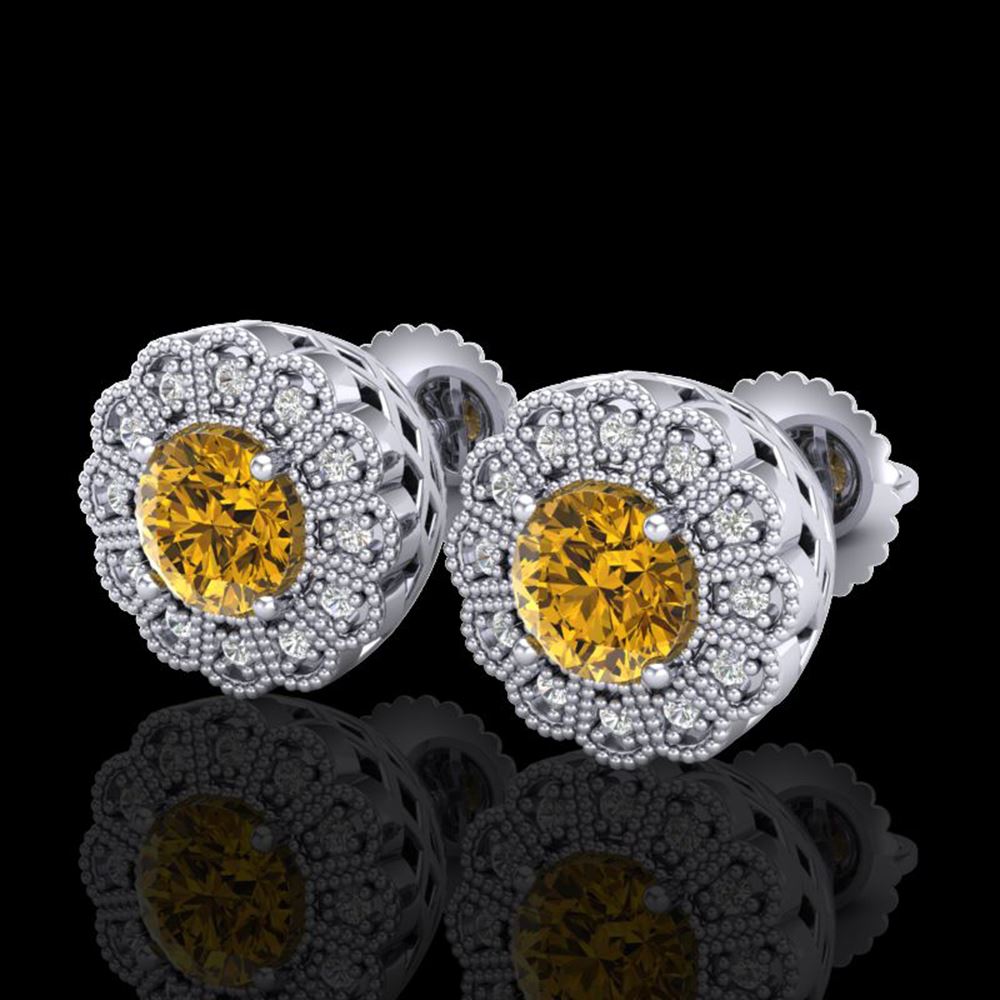 REF-218K2Y - SKU: 37840 ---- 1.32 ctw Intense Fancy Yellow Diamond Art Deco Earrings 18k White Gold